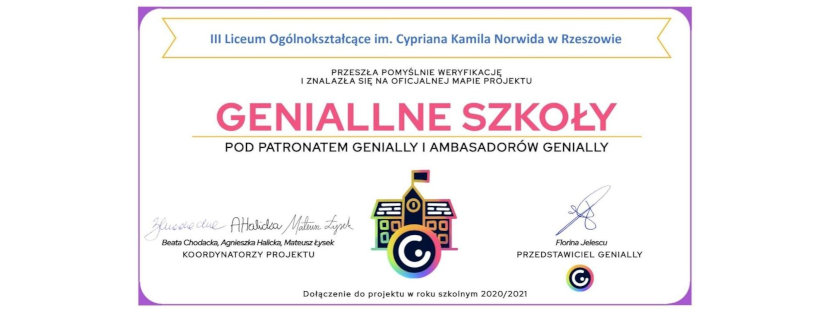 Projekt "Geniallne Szkoły na mapie" powstał, aby zaprezentować niezwykłe prace uczniów i nauczycieli, którzy otworzyli wirtualnie swoje szkoły dla innych! Prezentacje pokazują ogrom działań, aktywności i sukcesów uczniów, nauczycieli, kadry kierowniczej i szkół.