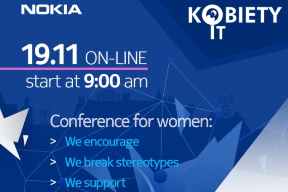 Jak co roku chcielibyśmy zaprosić Państwa oraz Państwa uczennice do udziału w czwartej edycji konferencji Kobiety IT organizowanej przez firmę NOKIA - 19.11.2020 – w tym roku całkowicie on-line. Wydarzenie skierowane jest między innymi do uczennic z ostatnich klas szkół średnich, które stoją przed wyborem ścieżki kariery. Konferencja ma celu popularyzację zawodów w branży IT, chcemy łamać stereotypy i pokazywać że zawody techniczne są dla każdego.